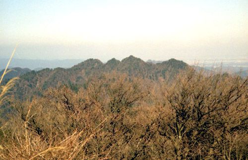 鐘ヶ岳頂上は樹林に覆われていて展望は開けません。山頂での休憩もそこそこに出発します。明るい尾根道からは冬枯れの山がみえます。ここからは岩っぽいところもありますが山ノ神隧道手前まで下ります。山ノ神隧道の真っ暗なトンネルを抜け不動尻までは林道歩きです。ここからは樹林帯の本格的な登りになります。。 |