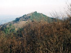 | 岩茸石山は疎らに生えた林が特徴的です。岩茸石山は展望がよく、ここまで歩いてきた稜線を見ることが出来ました。ここから高水山をへて軍畑駅に到着しました。 |
