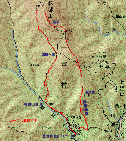 | 道満尾根~乾徳山~国師ヶ原コースの断面図 | ||||||||||||||||||||||||||||||
