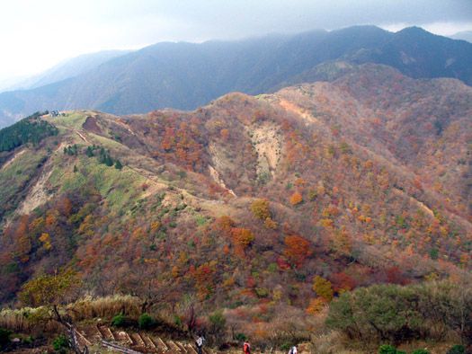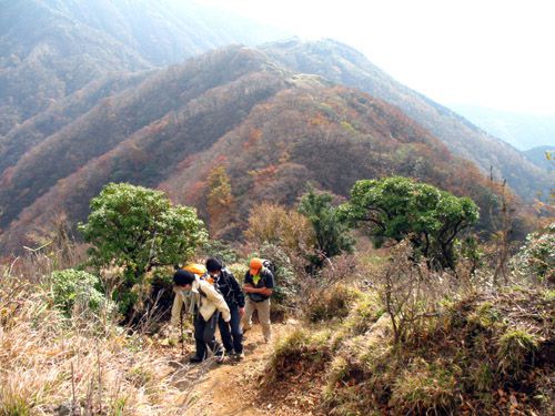 | Z状に伸びる表尾根の縦走路。左の小屋は烏尾山荘。右上のピークは新大日。 | |||||||||||||||||||||||||||||||||