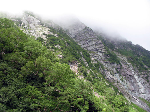 | 北岳の稜線が見える二俣付近、画面中ほどまで一面バイケイソウの群生地です | |||||||||||||||||||||||||||||||||