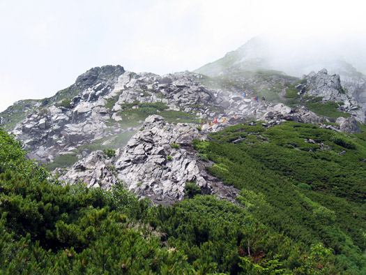 | 肩ノ小屋から北岳を目指すツアーの登山者 | |||||||||||||||||||||||||||||||||